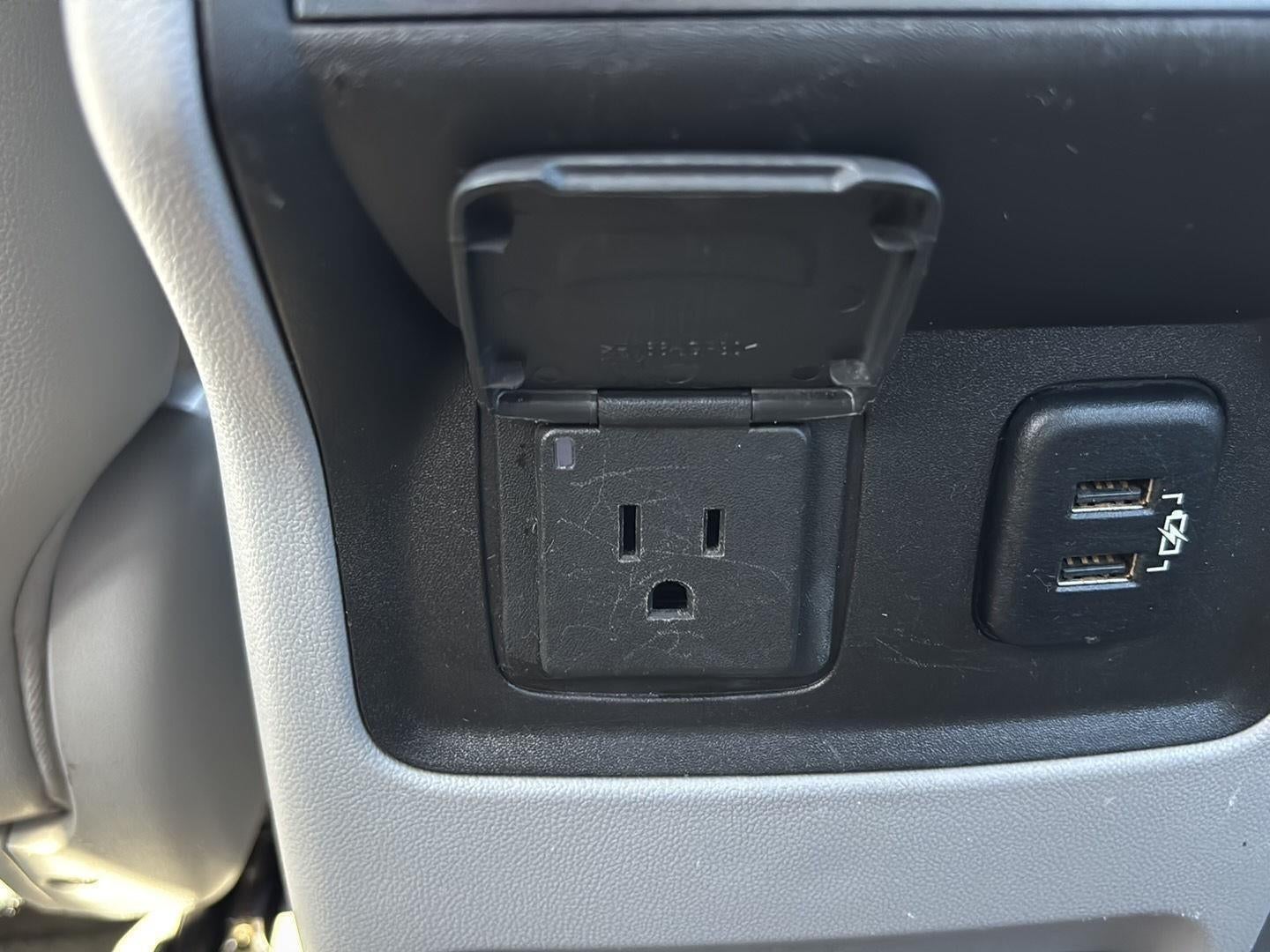 - 3-prong household style located on the rear of center console