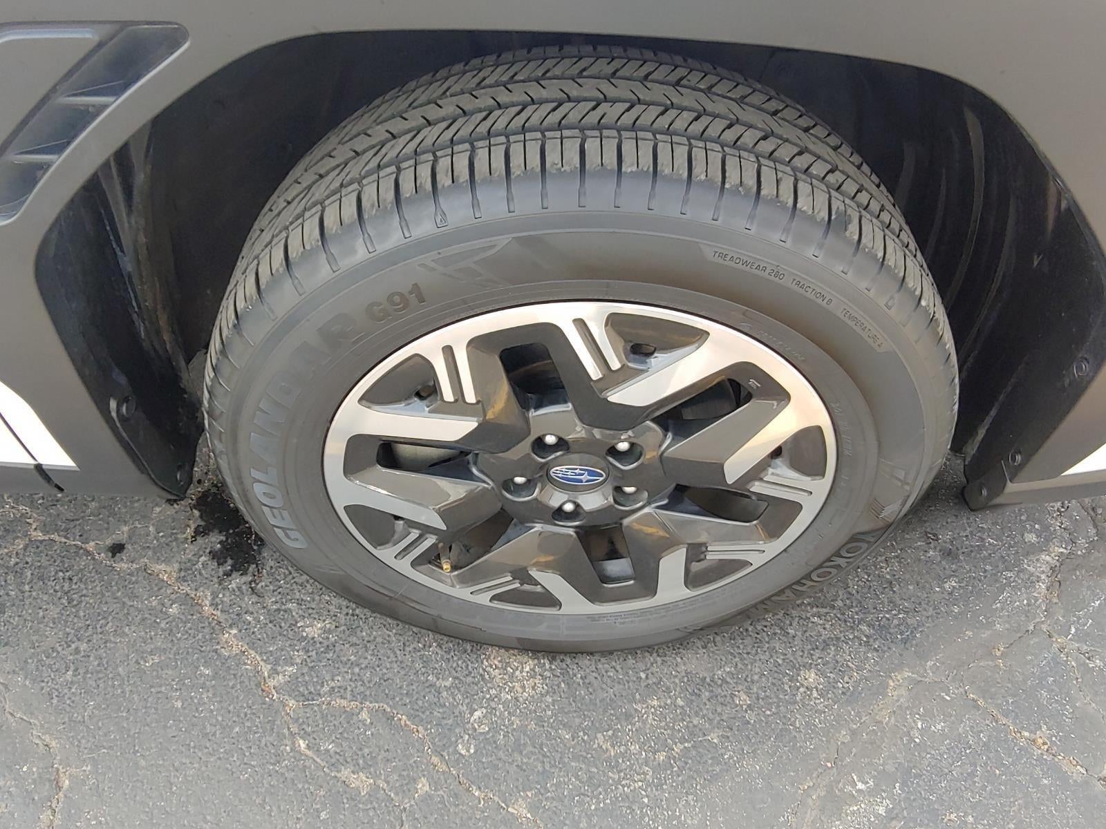 - Wheels: 17" x 7.0 J Dark Metallic Aluminum-Alloy -inc: machine finish and black wheel center cap w/Subaru 6 star logo